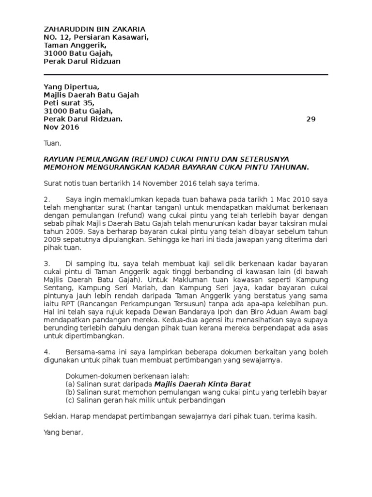 Surat Ke Majlis Daerah Batu Gajah Pdf